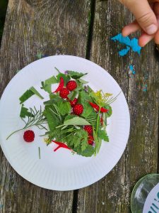 We kijken wat er groeit en wat je ermee kunt doen; qua voeding, huishoudmiddel of homeopathisch middel en laten onze zintuigen prikkelen.